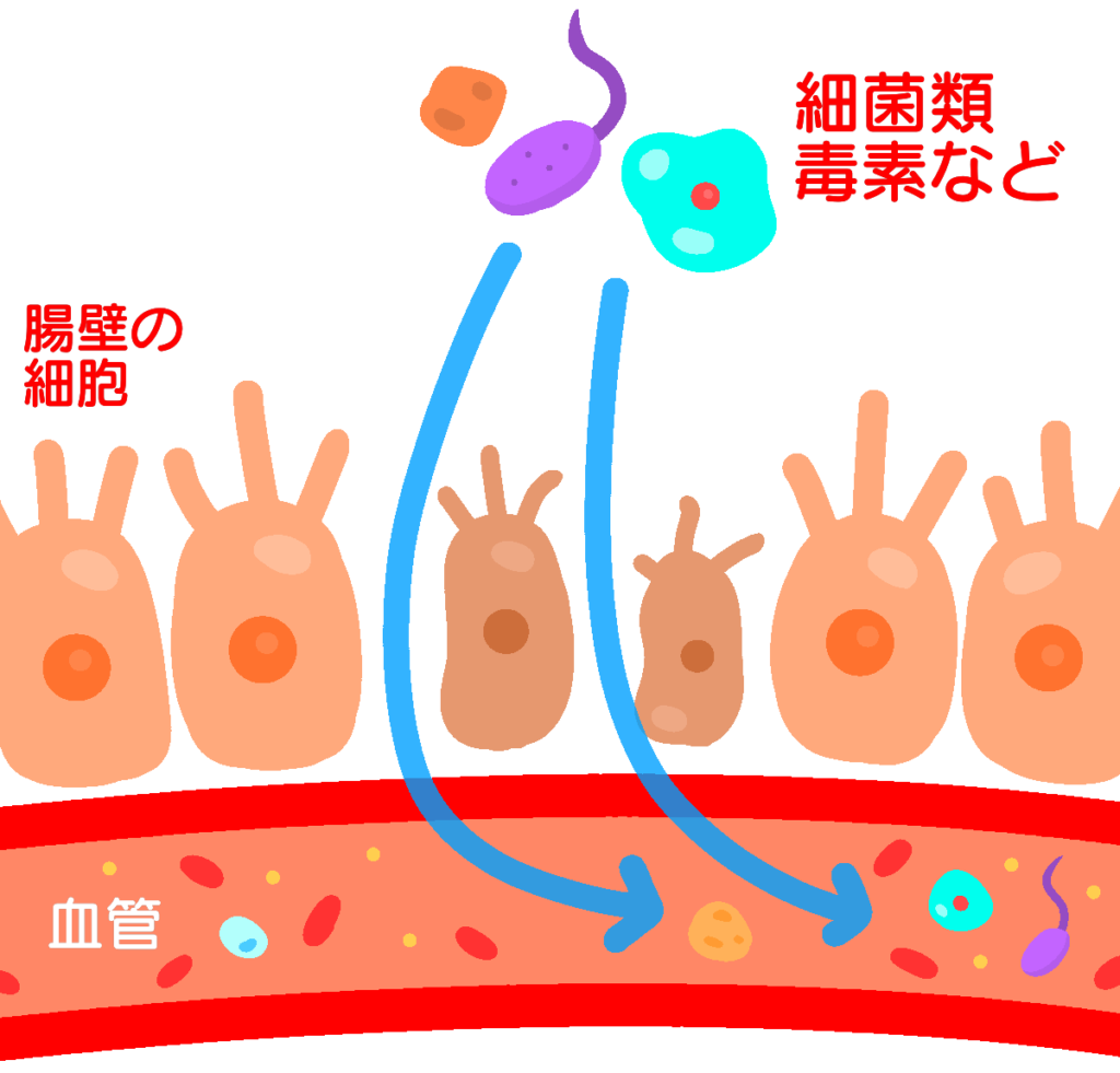 - 異物の侵入:タイトジャンクションが緩むと、腸壁に隙間ができ、未消化の食べ物や毒素などが血液中に漏れ出します(リーキーガット症候群)。