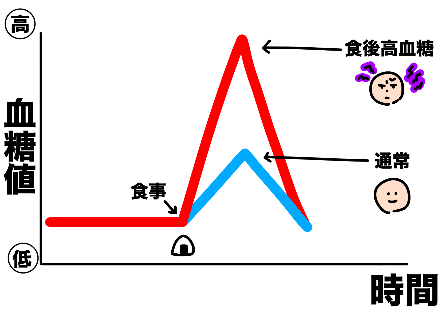 - 老化物質(AGEs)の生成:血糖値が急激に上がると、体内の余分な糖がタンパク質と結びつき、「AGEs(終末糖化産物)」という老化物質を生成します。