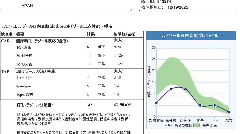 以前よりはコルチゾールは少し上がりましたね。でもまだまだです。