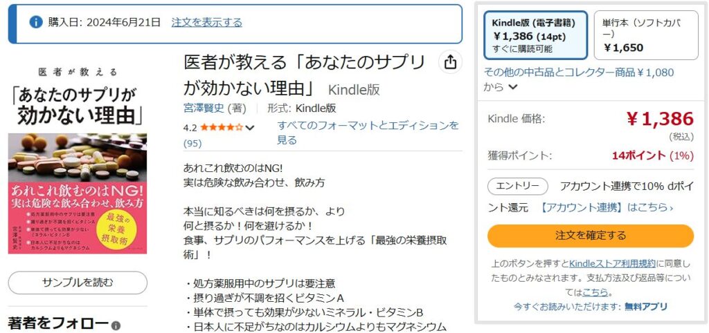 でもこれで副腎疲労や倦怠感、リーキーガットが解消されるなら頑張ろうと思い、分子栄養学の本を読み始めました。お勧めの本は宮澤賢史著『あなたのサプリが効かない理由』です。