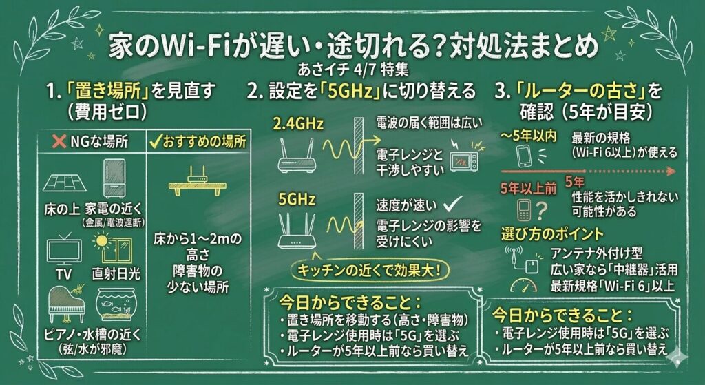 家のWi-Fiが遅い・途切れる…実はルーターの「置き場所」と「古さ」が原因かも。あさイチで紹介されたワザをわかりやすく解説します。