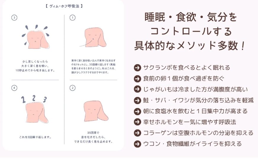 この本では日常に起こる症状別にホルモンの役割とコントロールの仕方をまとめていて、読んでいてわかりやすかったです。