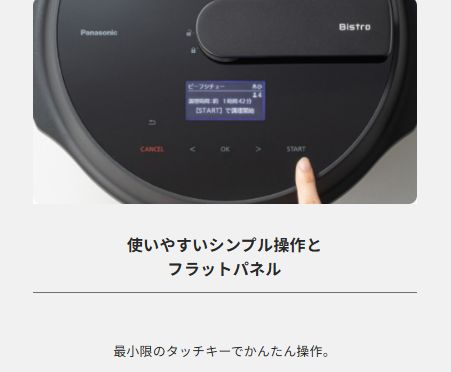 オートクッカー ビストロとはパナソニックの自動調理鍋で、煮る・炒める・蒸すなど多機能なマルチクッカーです。さらに、圧力調理を組み合わせて、鍋底をかきまぜる機能がついて、食材をムラなく混ぜるのが特徴。