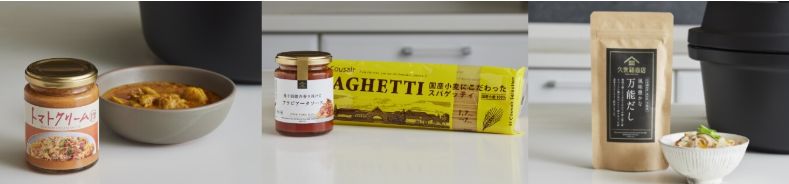 ちょっといいものを気軽に楽しんでみませんか?オートクッカーをレンタルすると、久世福商店・サンクゼールのパスタソース・調味料・だしが隔月で選べます。