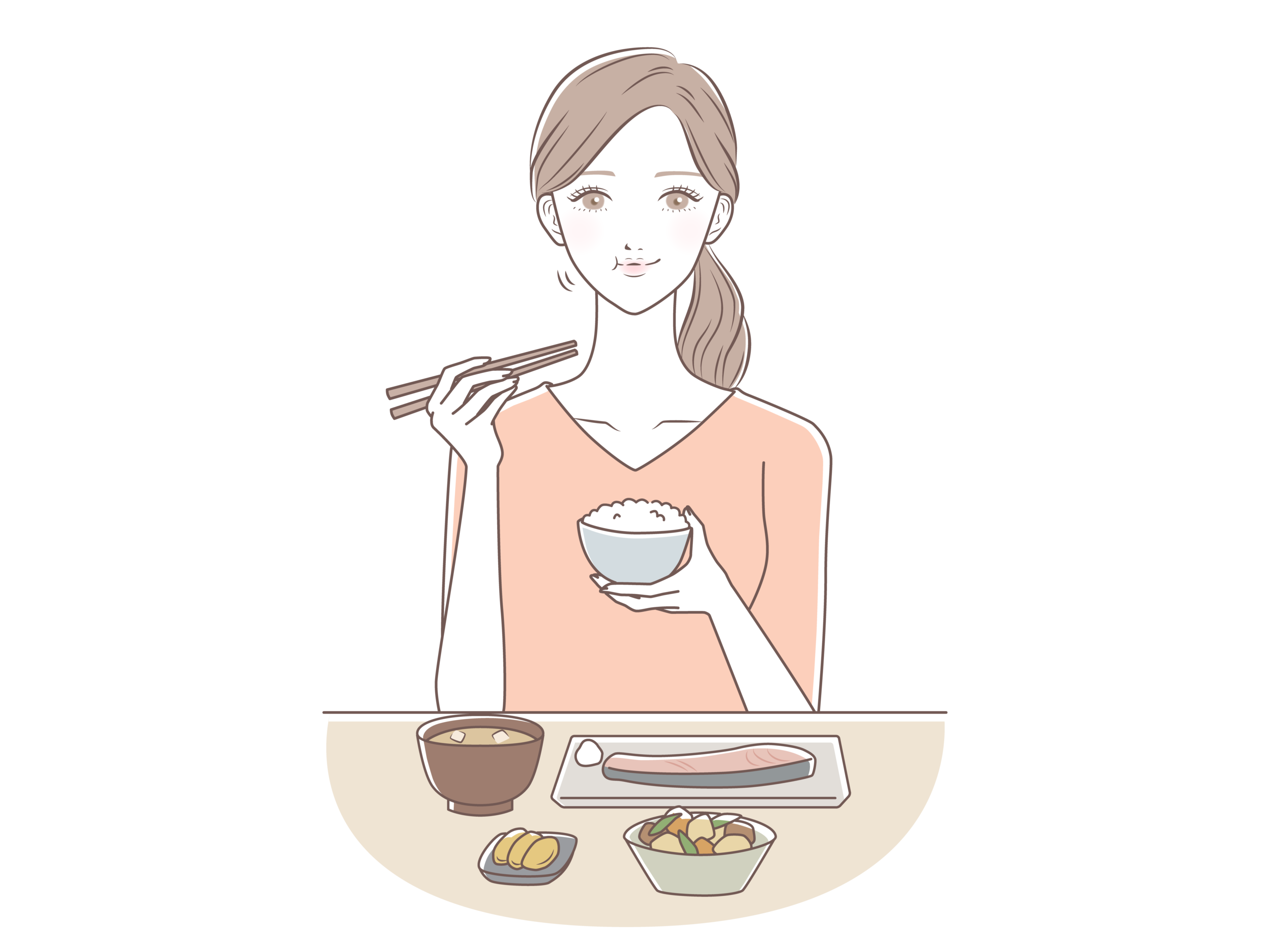 よく噛んでゆっくり食べます。野菜、お肉や魚などを先に食べます。最後がご飯などの炭水化物。満腹中枢が満たされる前にたくさん食べるのは控えましょう。