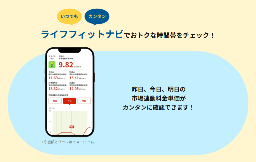 市場連動型プランのため、 でんきを使う時間をずらすだけで使用量は同じでも、でんき代が抑えられます。
