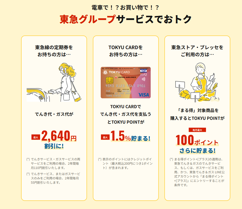 • 東急ストア・プレッセでのボーナス: 東急でんき&ガスを契約していると、東急ストアでの買い物時にポイントがアップする優待が受けられることがあります。